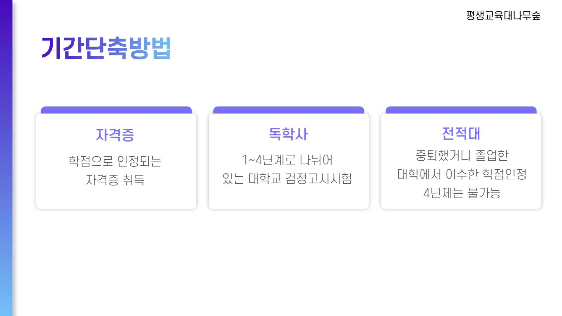 학점은행제를 활용하시면 기간을 단축할 수 있는 방법이 있습니다.