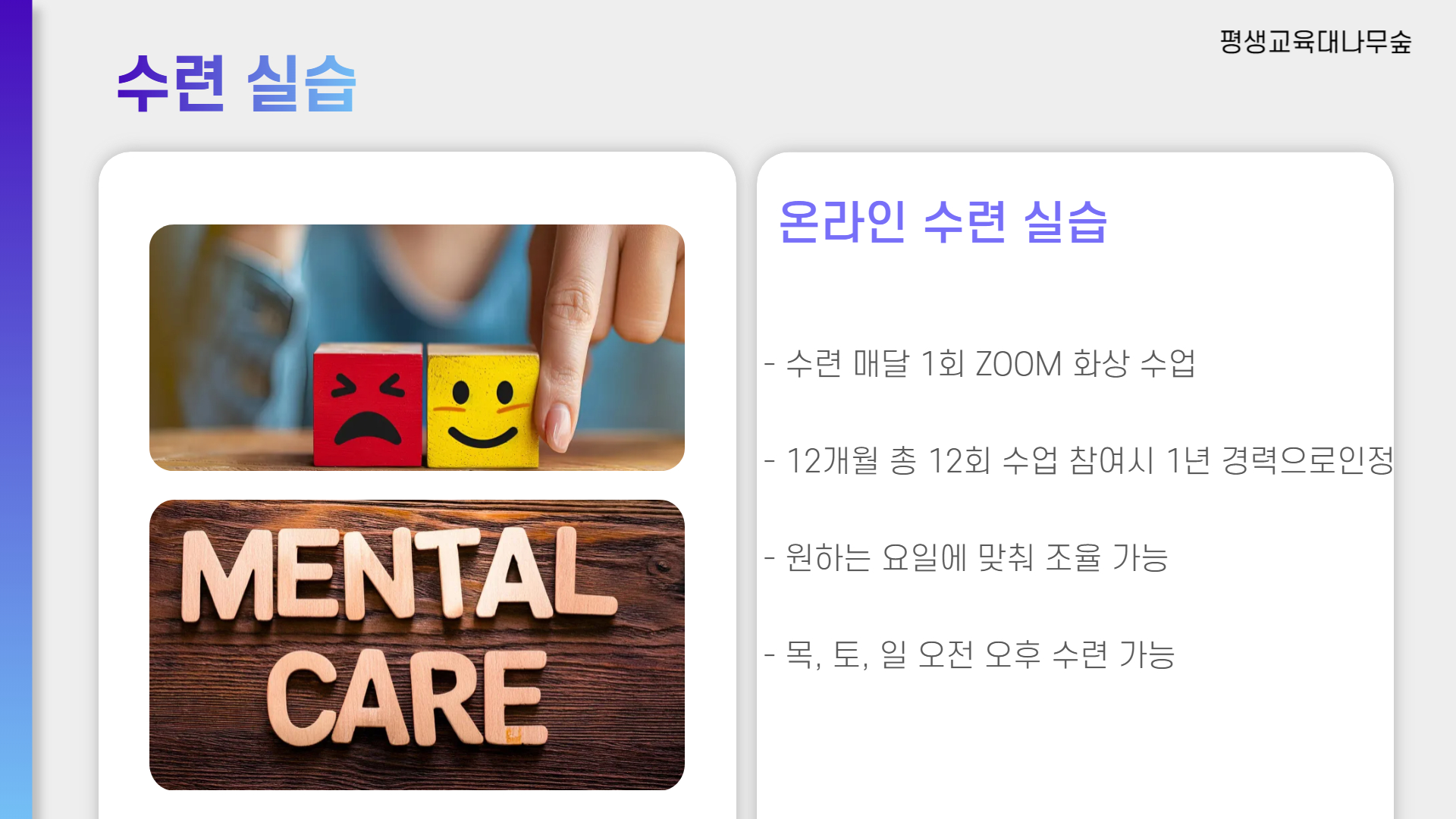 수련 실습의 경우 매달 1번씩 온라인 줌 화상 수업으로 진행이 됩니다.