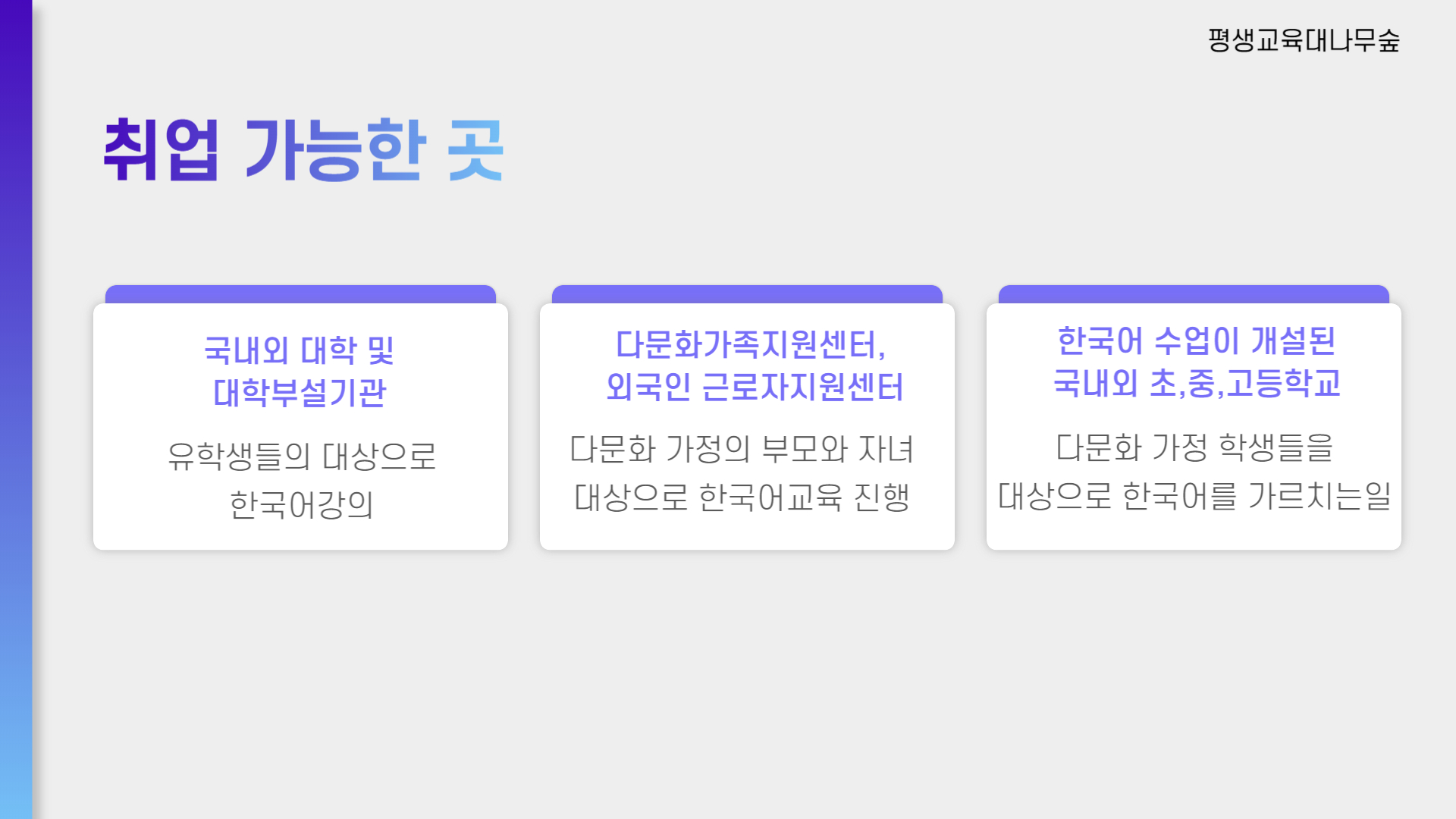 한국어 강사로 활동을 하기 위해선 실습은 필수 사항입니다.