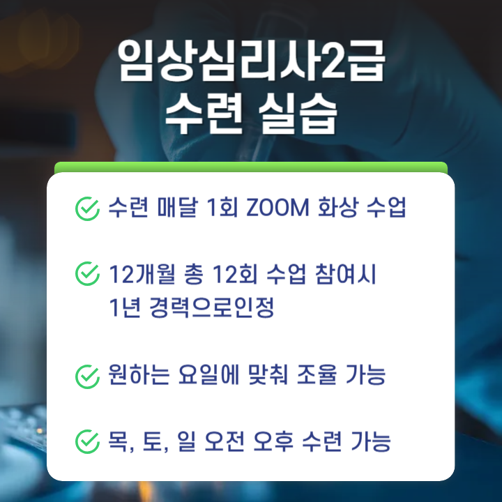 ✔ 임상심리 관련 1년 이상 수련 실습
