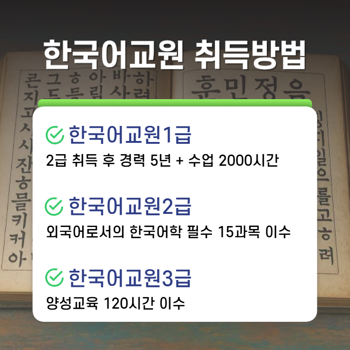 ✔ 2급: 외국어로서의 한국어학 전공 + 관련 과목 이수