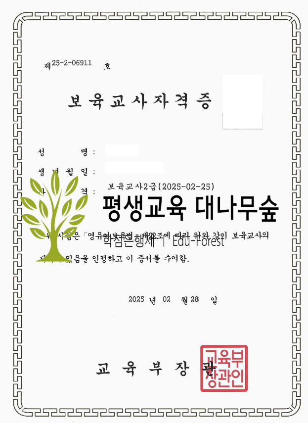 🏆 현재 성과 : 보육교사2급 자격증 취득성공