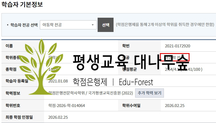 26년 기준 아동학사 학위를
