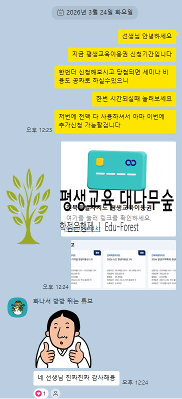 ⚡ 멘토의 한마디: 평생교육이용권 신청방법 알고싶다면 평생교육 대나무숲으로 문의주세요~!