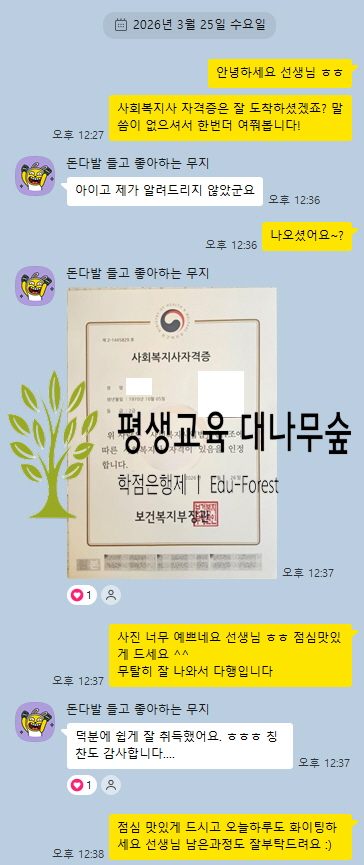 🏆 현재 성과 : 사회복지사2급 자격증 발급완료